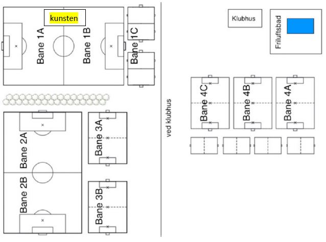 Opdeling af baner er tilladt 11mands, 2x8mands eller 4 x5mands (1/2 8mands)